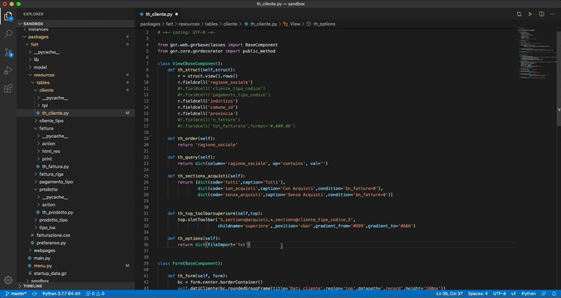 sempre all’interno del progetto Sandbox ) lo store di default è impostato su virtuale in quanto il sistema, non sapendo preventivamente quanto possa essere pesante il contenuto della tabella, potremmo dire che si «autotutela»;nel caso inevece di grid di tabelle in relazione (quindi ad esempio la form del cliente che mostra la griglia con le sue fatture) le griglie in relazione vengono caricate per default con store statico e questo comportamento è innescato direttamente dalla relazione che lega il cliente alla lista delle sue fatture.